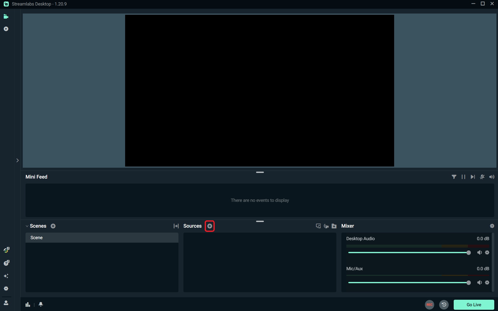 2. Now you have to open Streamlabs and click on the little "+" icon next to "Sources".